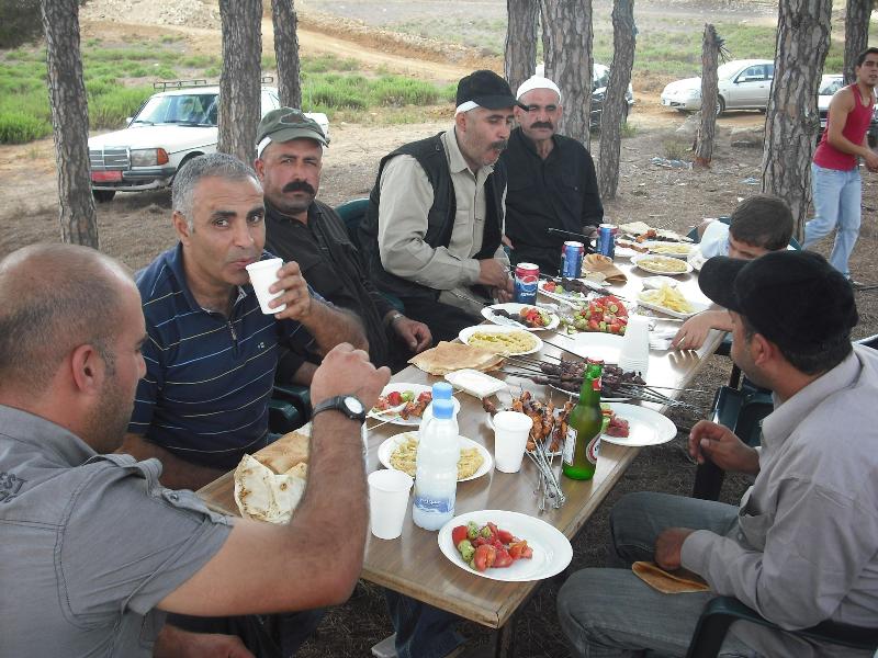 Everyone enjoyed a Lebanese food lunch in the open under the pine trees